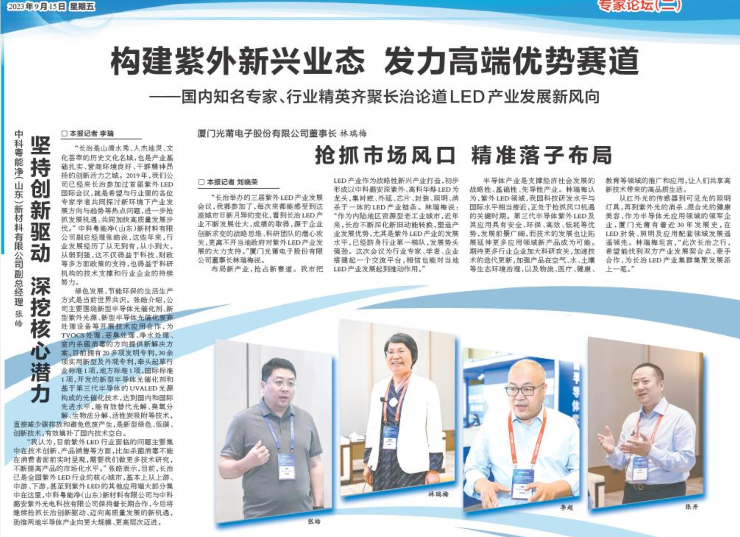 第三屆紫外LED國際會議暨長治LED產業發展推進大會閉幕報告上,由公司副總經理張皓帶來以《第三代半導體UVA-LED光催化技術在室內空氣凈化及環保廢氣處理中的應用》為題的報告,并與行業里的各位專家學者共同探討新環境下產業發展方向與趨勢等熱點問題,進一步搶抓發展機遇、共同加快高質量發展步伐。